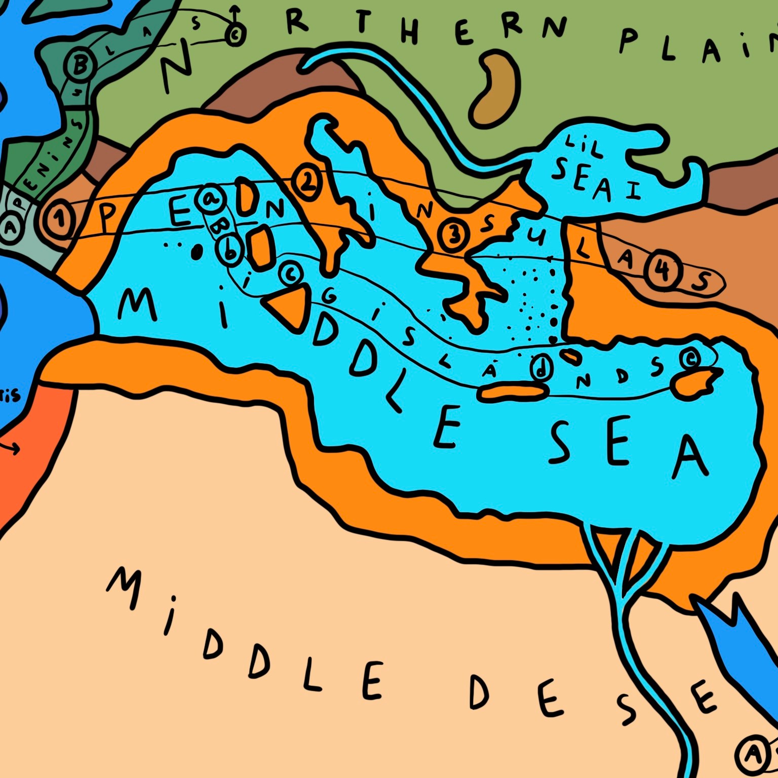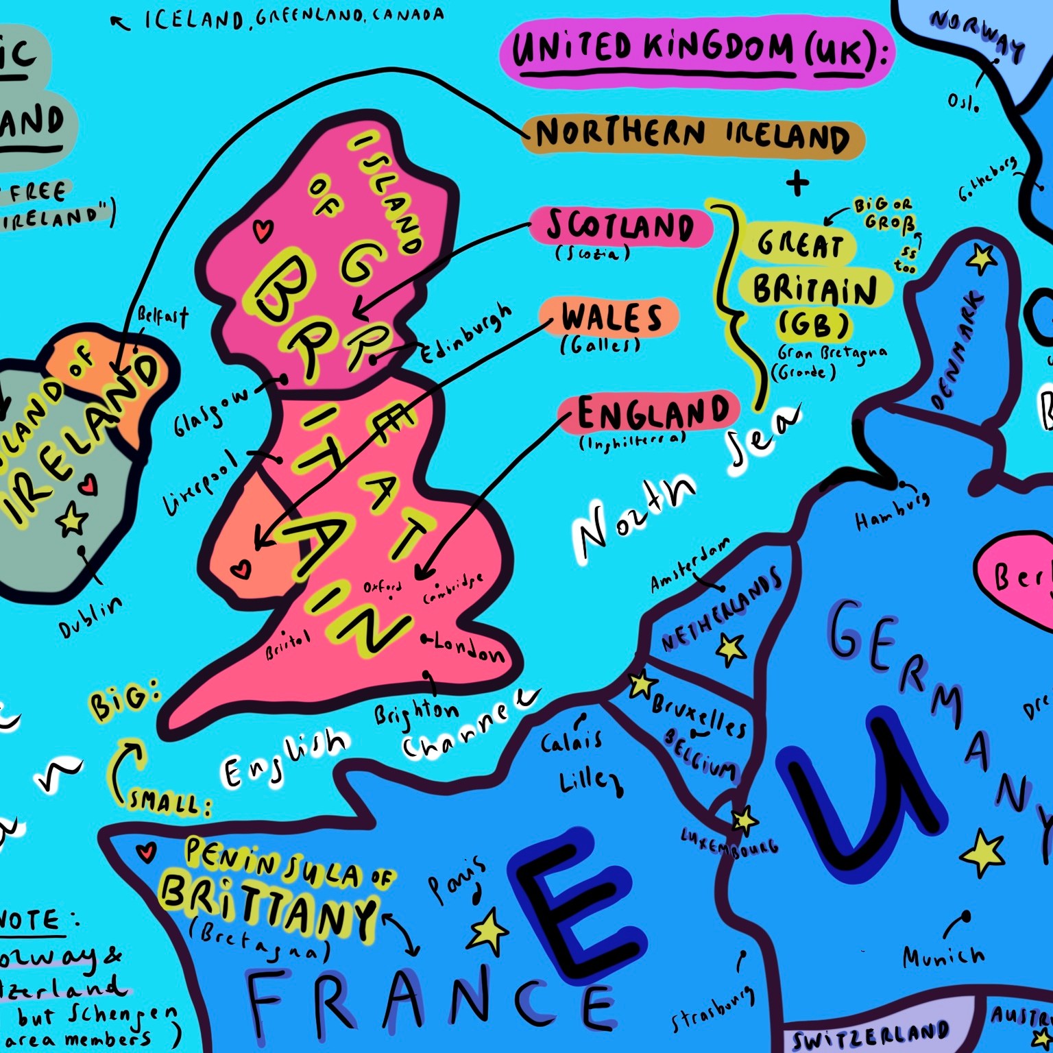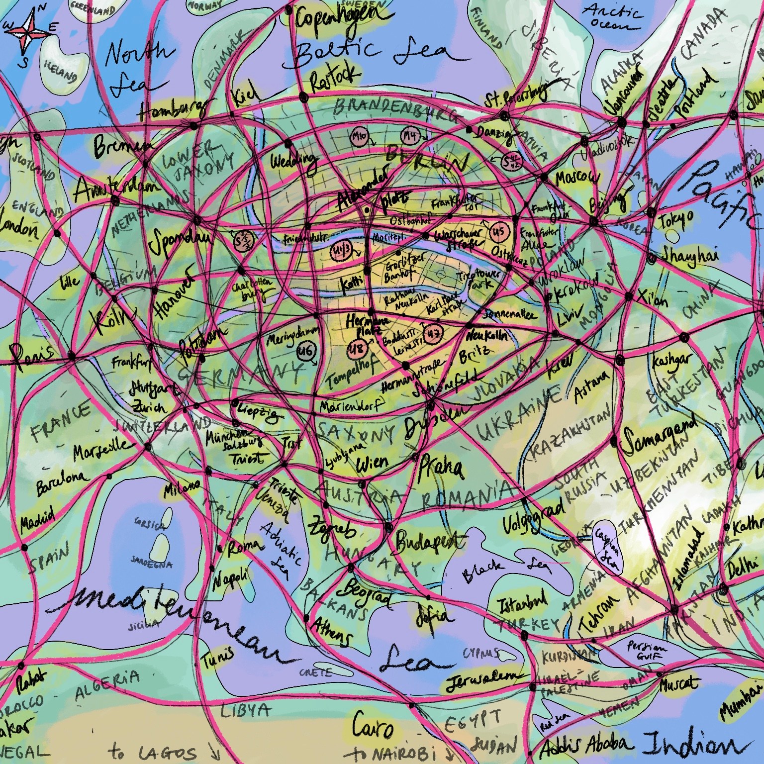 Every place comes together at the unique intersection, beyond borders, of many different histories (of people, of animals, of objects, of commodities, of knowledge, of power…). To think beyond national and “continental” borders, I made this map to play with the idea of overlapping federations (of which the EU would be just one).