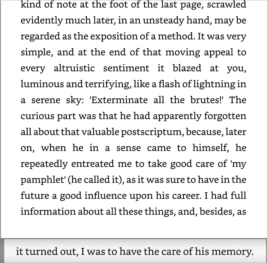 Please read the attached short excerpt from Conrad’s book. Why does Conrad say that “all of Europe helped produce Kurz”? Was it just Belgium who colonized Africa? Write a paragraph connecting your answers also to what you already know about South Africa. Where does “exterminate all the brutes” come from, as an idea, in Kurt’s quote?